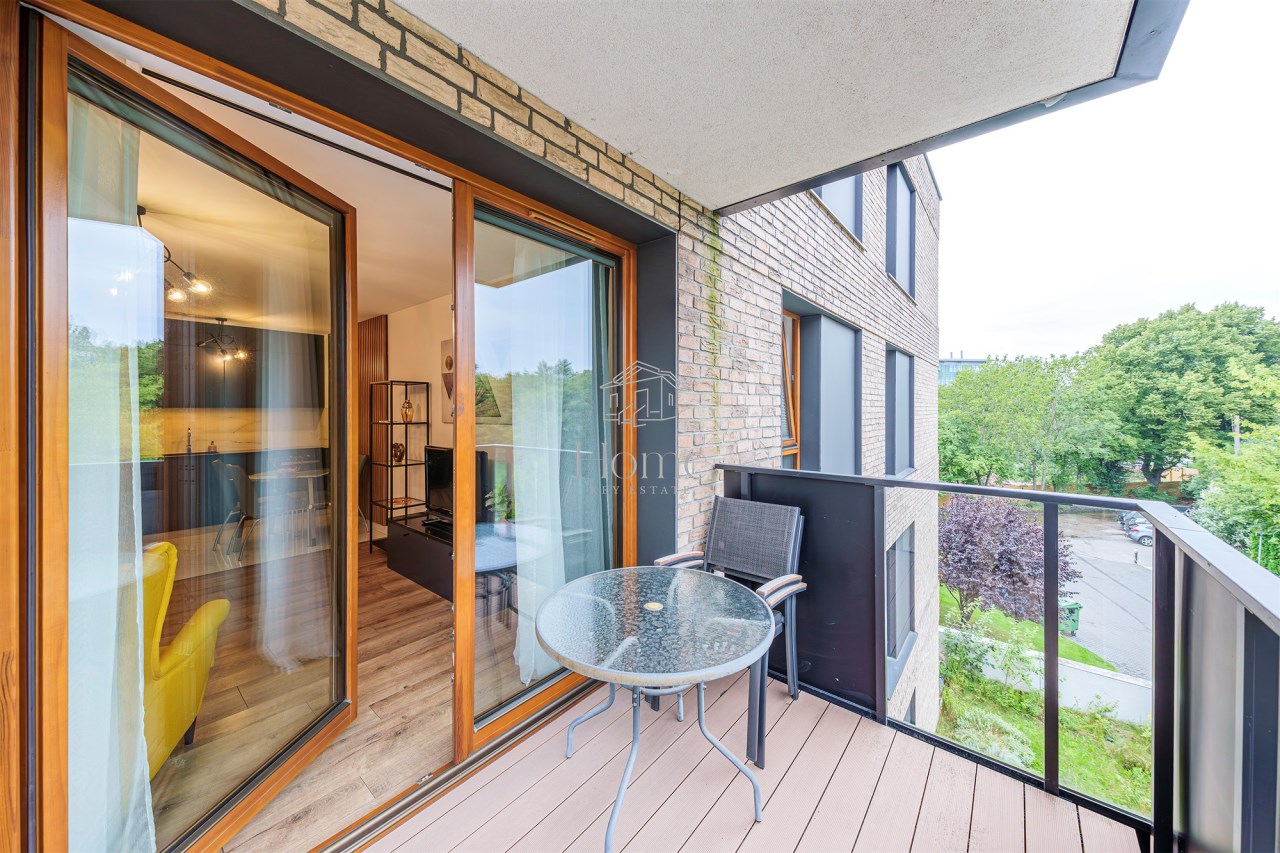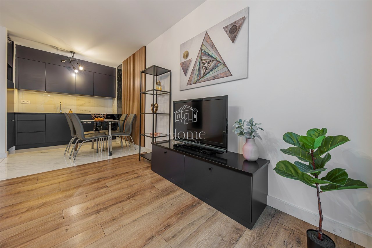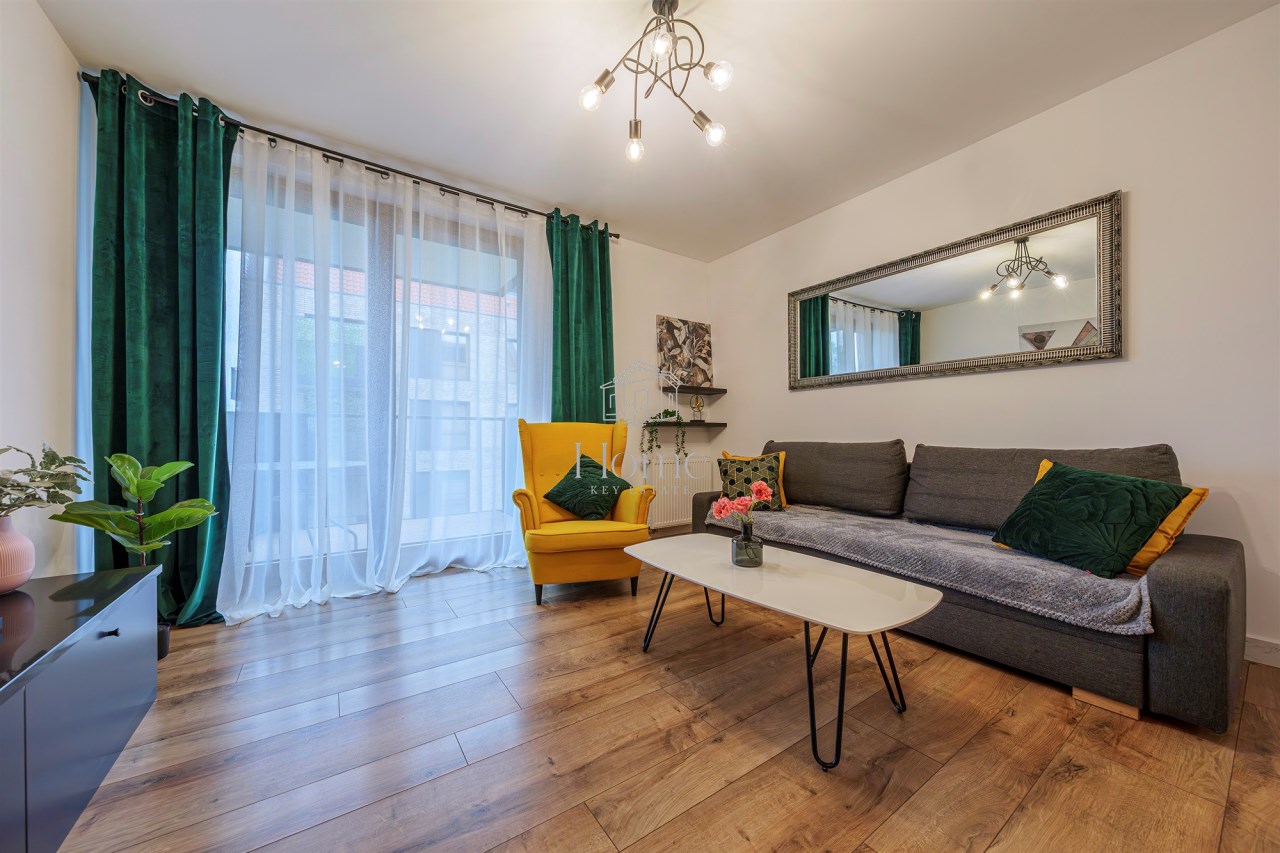 Mieszkanie o łącznej powierzchni 45,48 m2, znajduje się na drugim piętrze w nowoczesnym apartamentowcu z windą. Apartament składa się z przestronnego salonu z aneksem kuchennym i wyjściem na balkon, przytulnej sypialni, łazienki oraz przedpokoju z szafą w zabudowie.