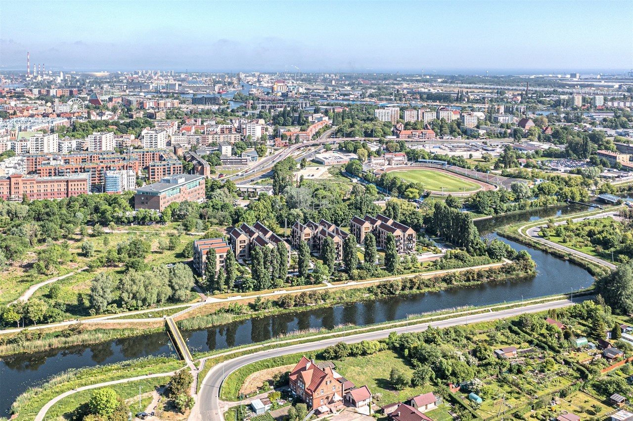 Świetna lokalizacja mieszkania to niewątpliwie duży atut. Nieruchomość znajduje się w jednej z najbardziej prestiżowych części Gdańska – na zamkniętym osiedlu Nad Motławą. To miejsce, które łączy spokój nadwodnej okolicy z bliskością tętniącego życiem centrum miasta.